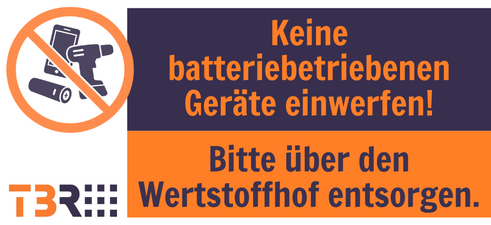 - Es dürfen nur Geräte ohne Akku/Batterien eingeworfen werden